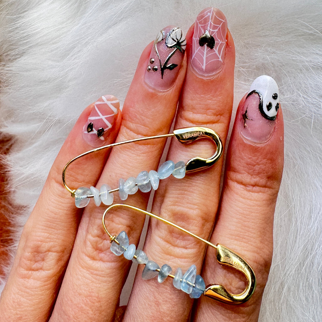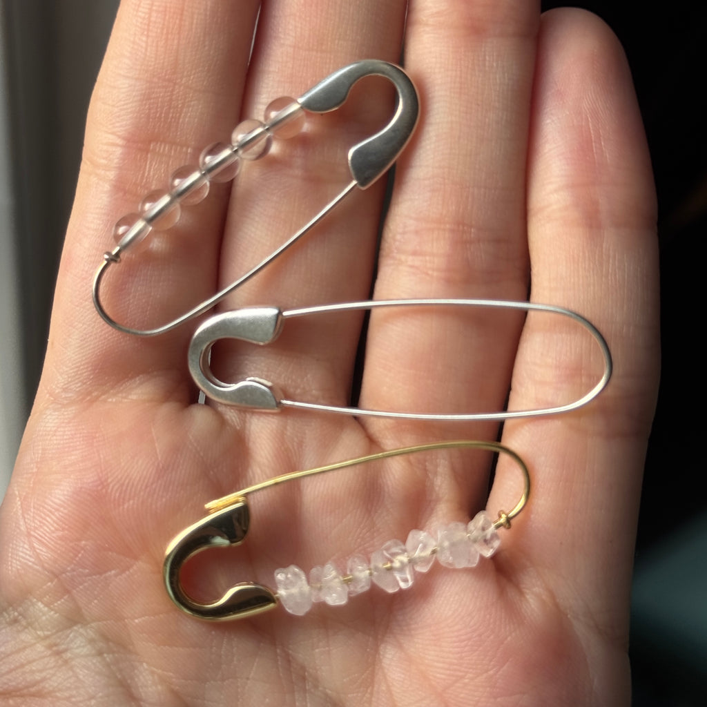 Safety pins make you look badass but make you feel safe! Gear up your ears with these little cuties! The natural stones are such a perfect touch to any look. They look amazing stacked with other earrings as well!