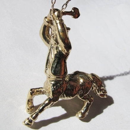 Lovely Centaur with eye patch, wielding a hatchet with pure passion only a half being can evoke. Got a rad pirate cap & very detail horse accents. Comes on 18" or 24" chain.