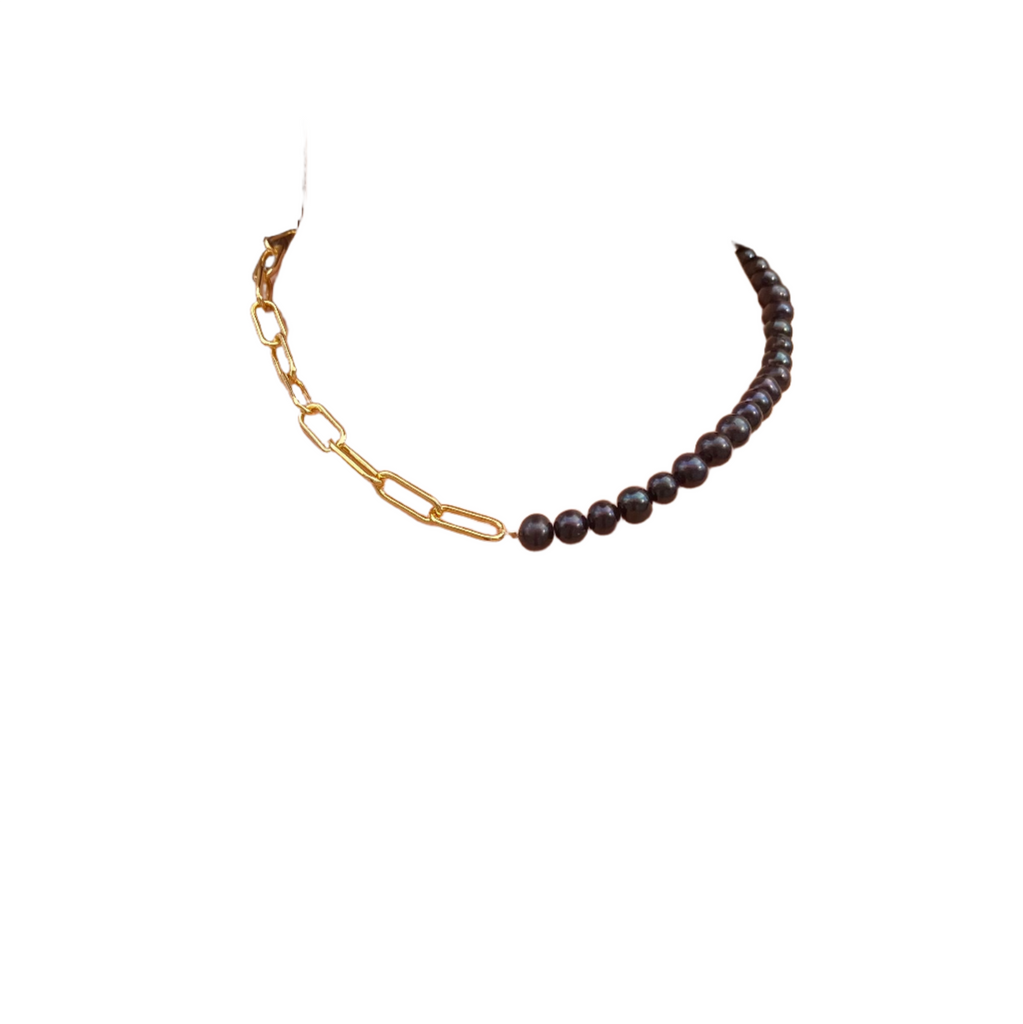 Beautiful midnight blue pearls on a badass chain. So wonderful to wear everyday.