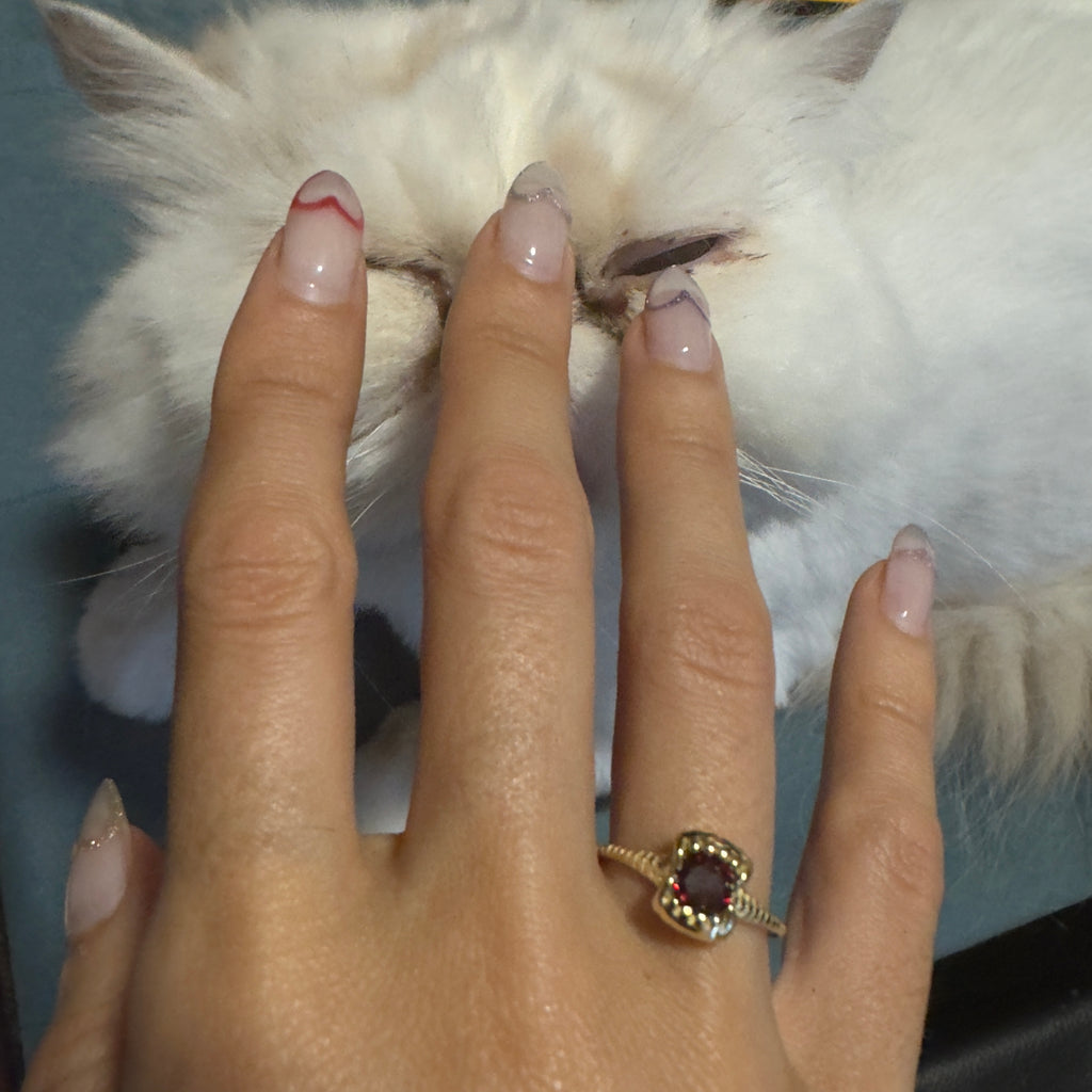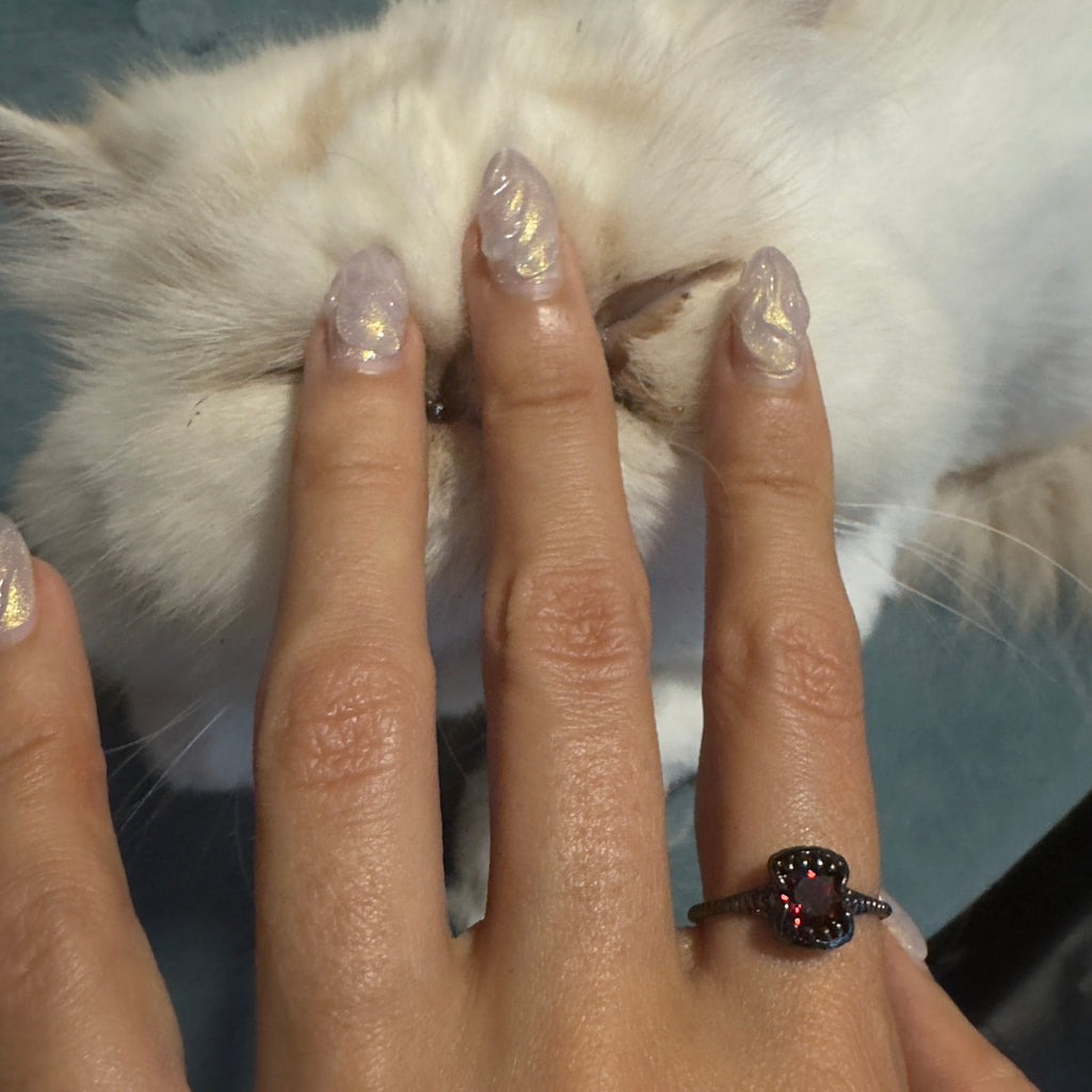 Comes with a special rutilated quartz stone with gold inclusions for the treasure you are, black sapphire or red garnet in sterling silver. A dark, dark option with gun metal plated silver