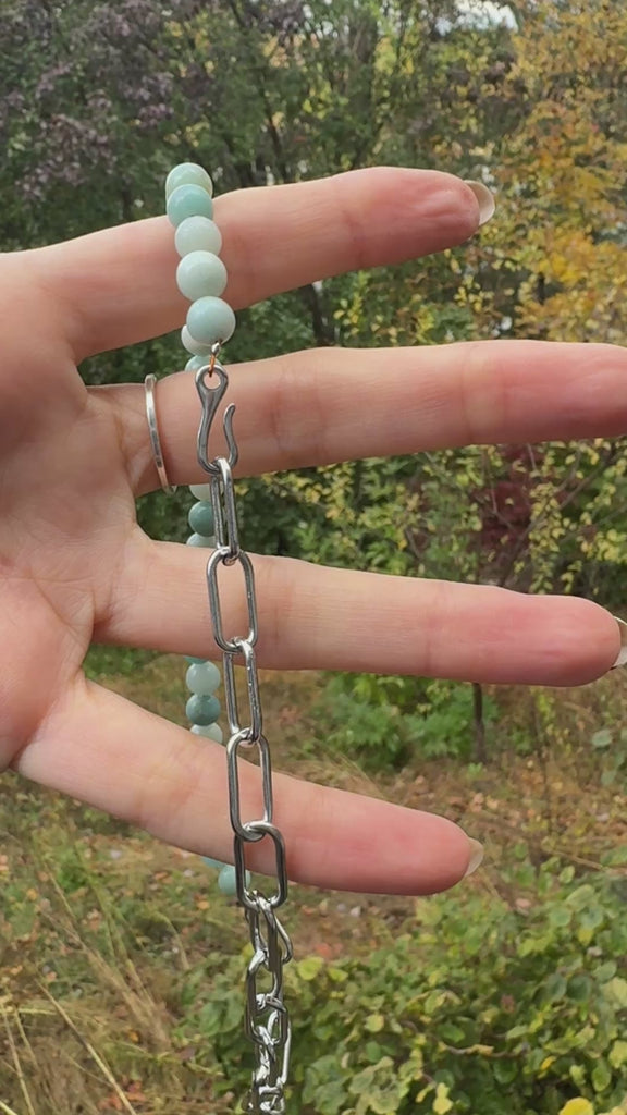 Our customer-fave magical stone necklace now with a half chunky or barbed stainless hypoallergenic steel chain or all stone with lovely steel clasp! Only 10 made of each so snag yours before they’re sold out forever <3