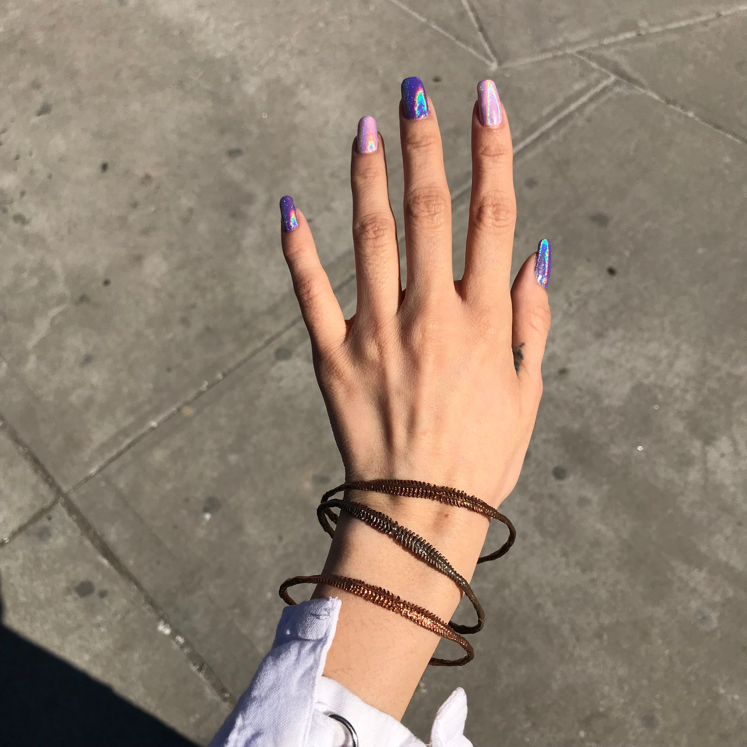 This detailed spine cuff is beautiful and adjustable! We recommend not bending every day as it is a very delicate piece. Unobtrusive enough to leave on for a few days!