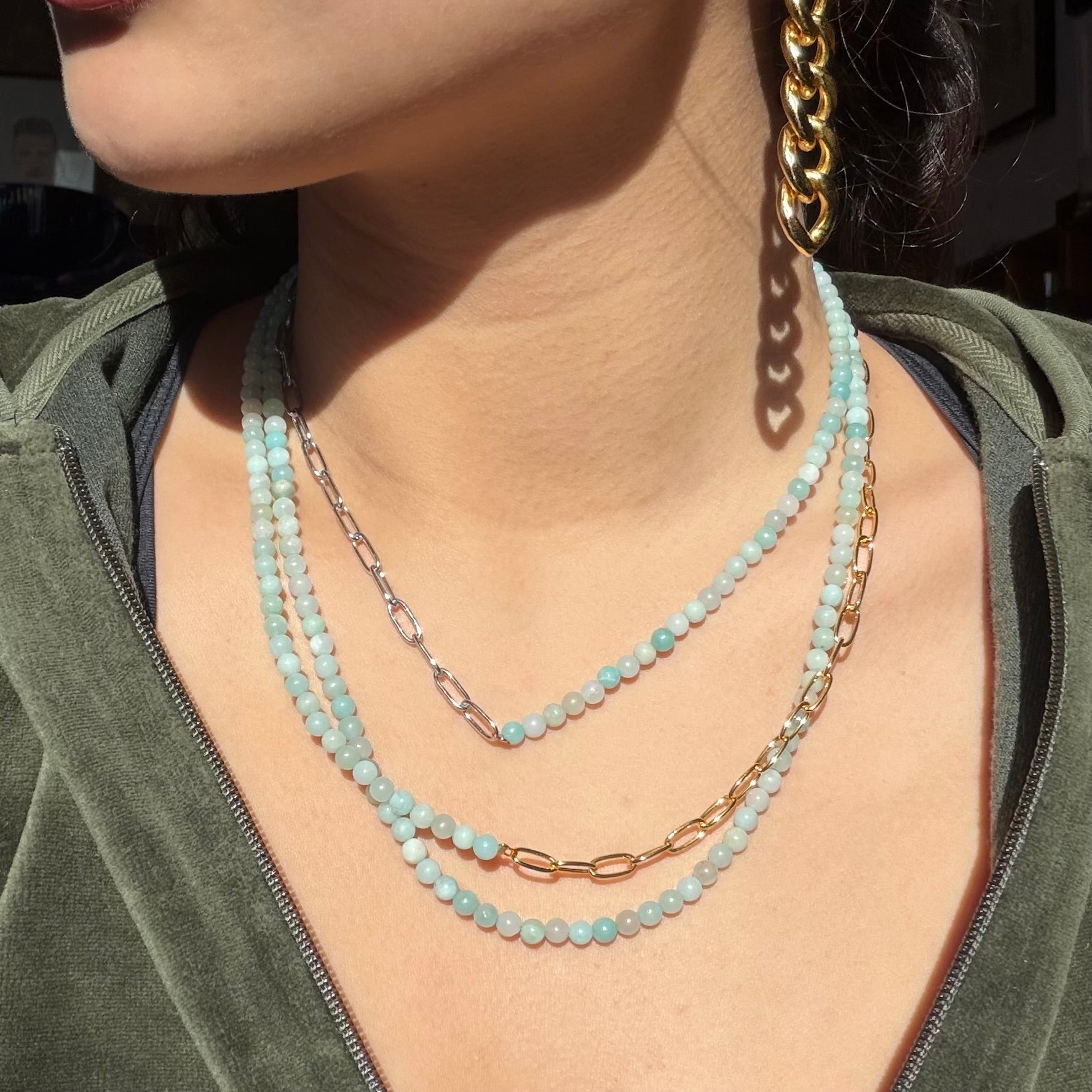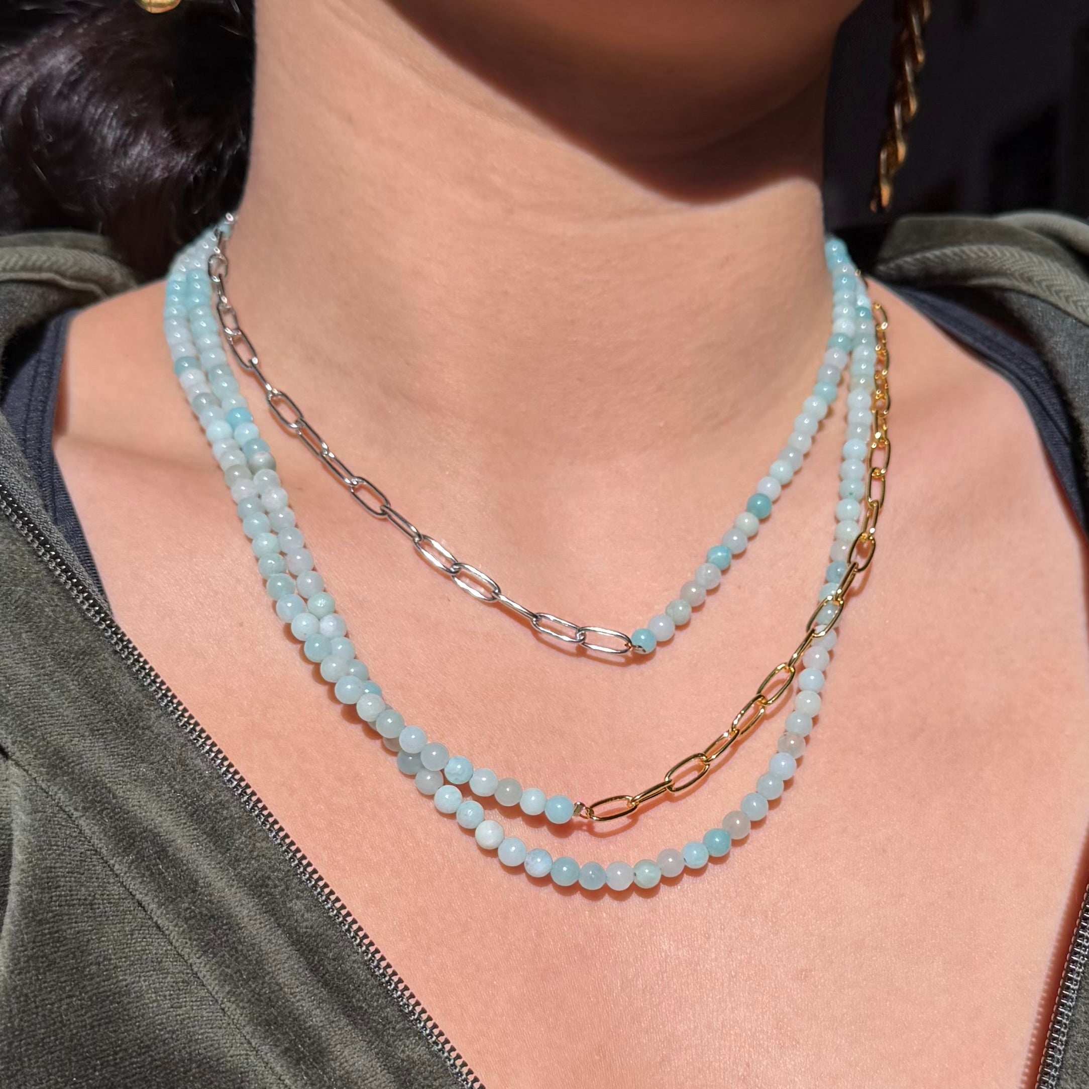 14" 4mm Amazonite Half Chunky Chain Simple Clasp