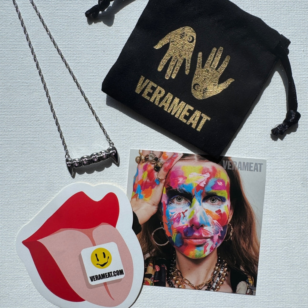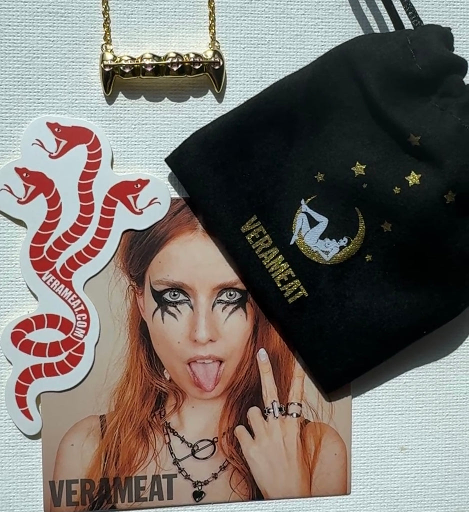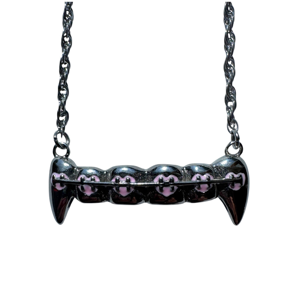 Vampire with pink heart braces, such an inspiring fun image that will snag you compliments. Pretty gold-plated brass and badass stainless steel.