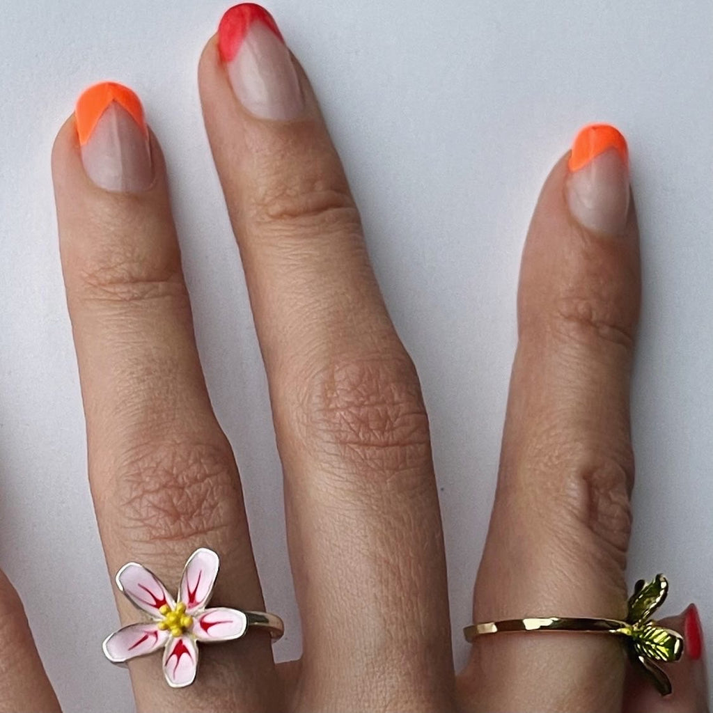 Enjoy the colorful enamel perfect for spring! Green enamel at bottom of petals adds an extra elegant touch!