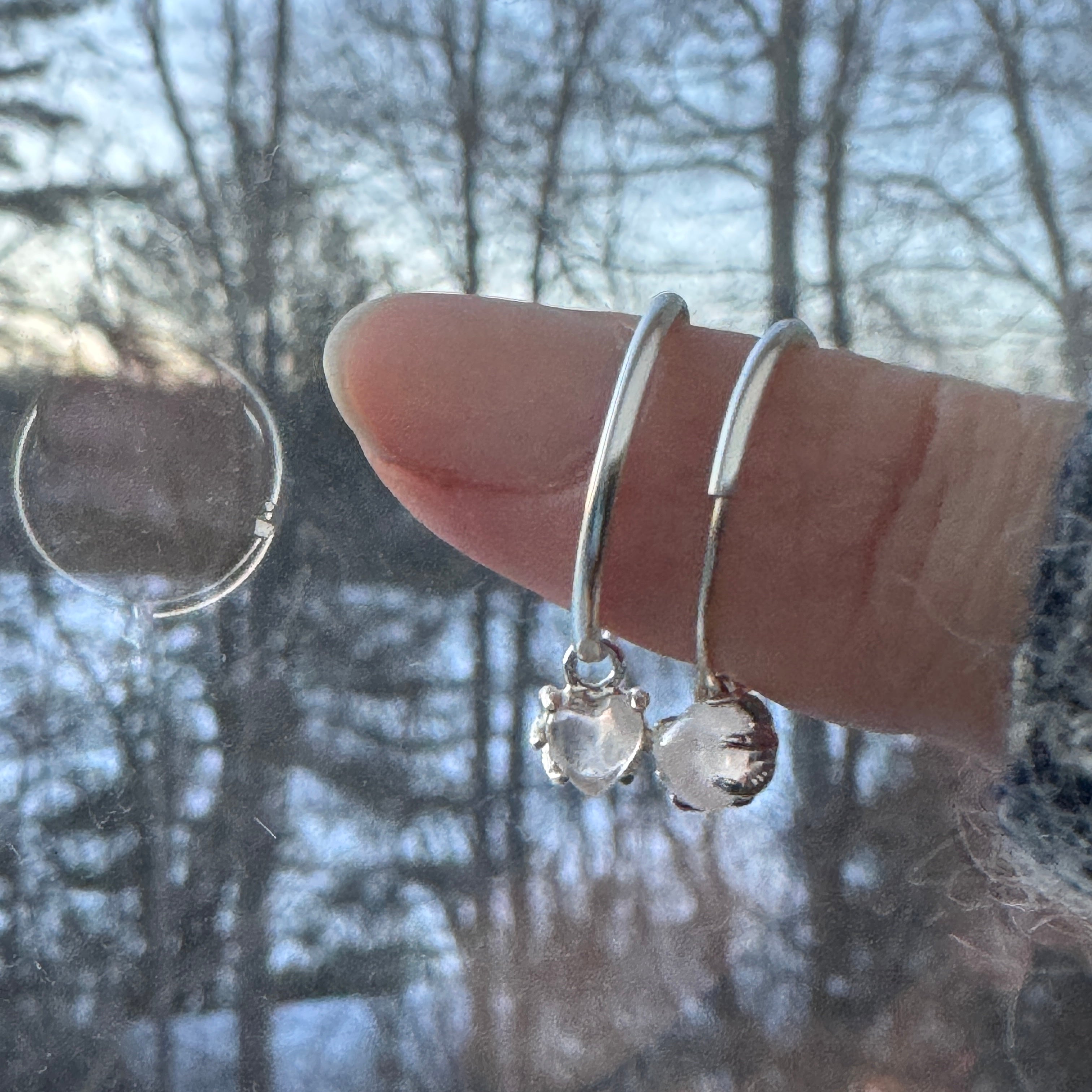 These elegant hoops have tiny claw hearts with natural healing stones to bring you spring fling vibes into any season. These stones are said to have healing properties throughout history. Hoop is around 3/4”