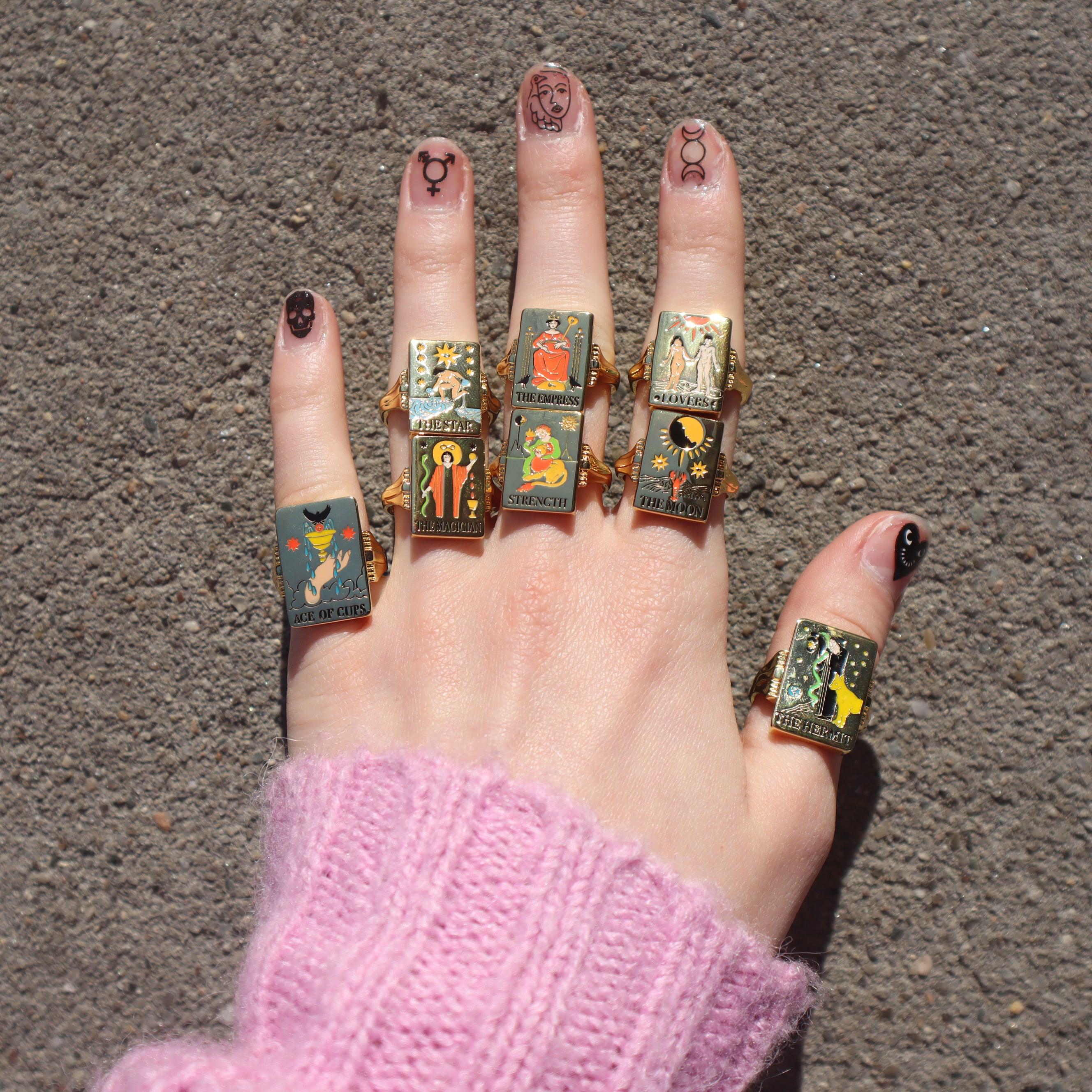 Beautiful tiny tarot card style rings with gorgeous colorful enamel to add color magic into your manifesting practice!