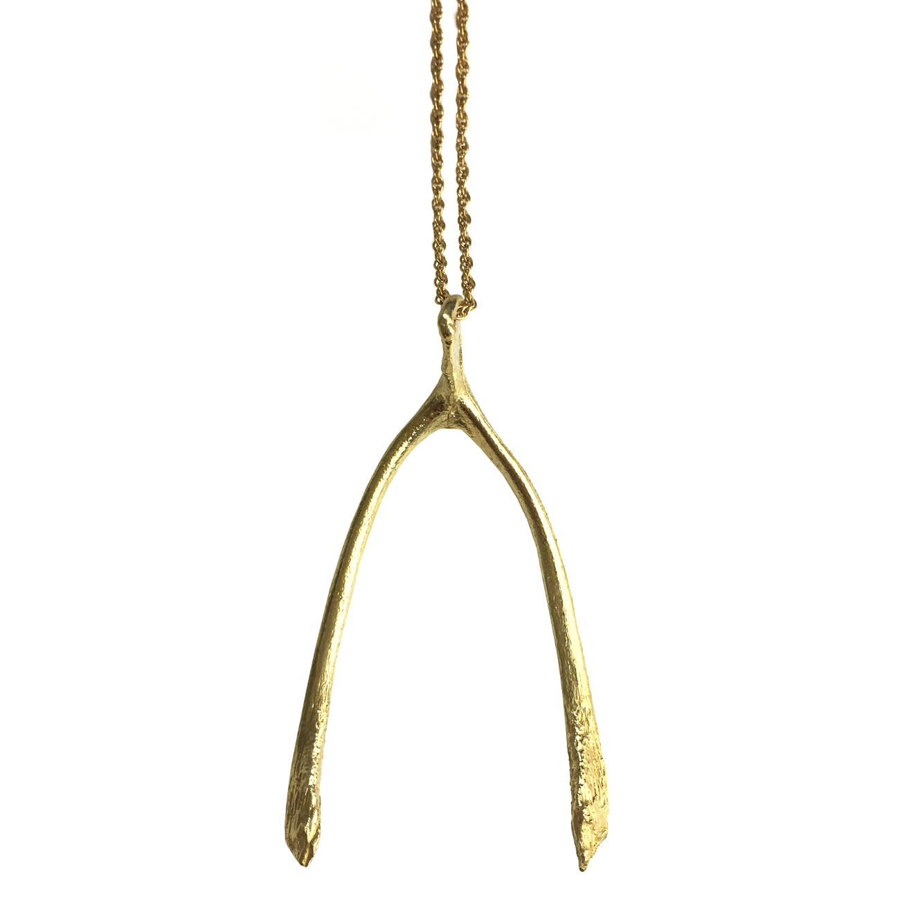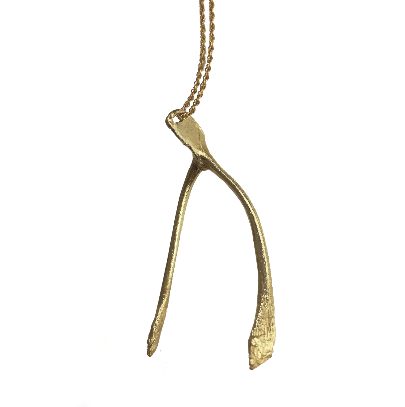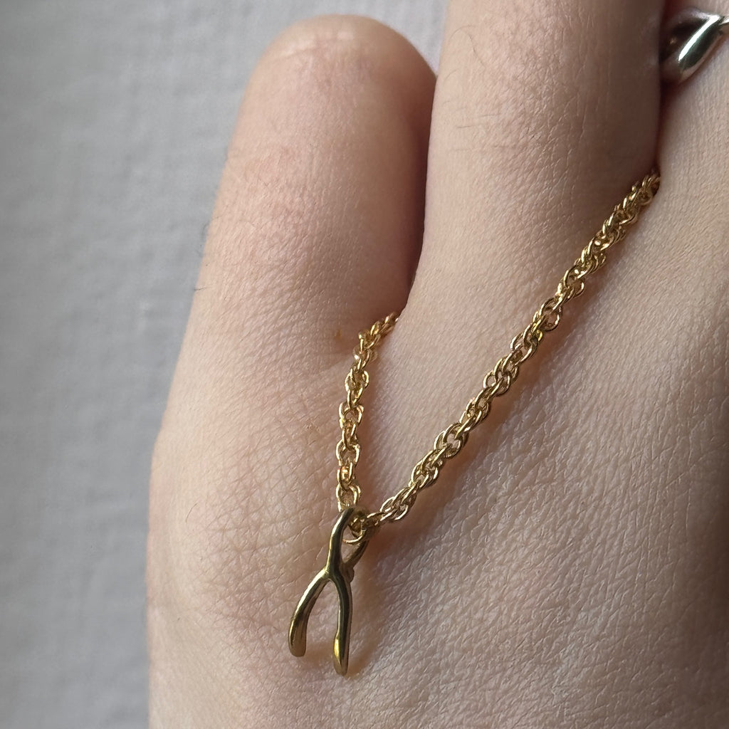A wishbone charm that brings you luck wherever you go! With hairline details. Note: not to be snapped ;)
