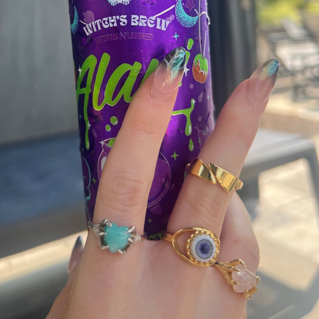 Do you have a chef in yo lyf? This fun double knife ring says Kiss the Cook on the back, making it a great way to treat yo self or a loved one! Rad detailed knives that wrap around your finger! Perfect for the cooks, knife throwers, or sharp witted peeps in your life!
