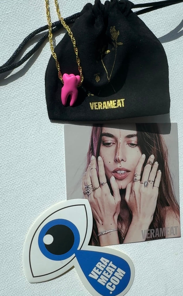 A hot pink statement piece and moody Babe black gun metal option! Fab for those with a sweet tooth. Perfect gift for dentists, anatomy lovers, and the baller in your life. Catch 1 million compliments. Each has a 24"chain, adjustable at 18" using subtle mini hoops for versatile styling. Chains are soldered closed and designed to last and lay smoothly. You can choose your vibe with hot pink on a brass chain or black gunmetal for the ultimate cool-girl aesthetic.