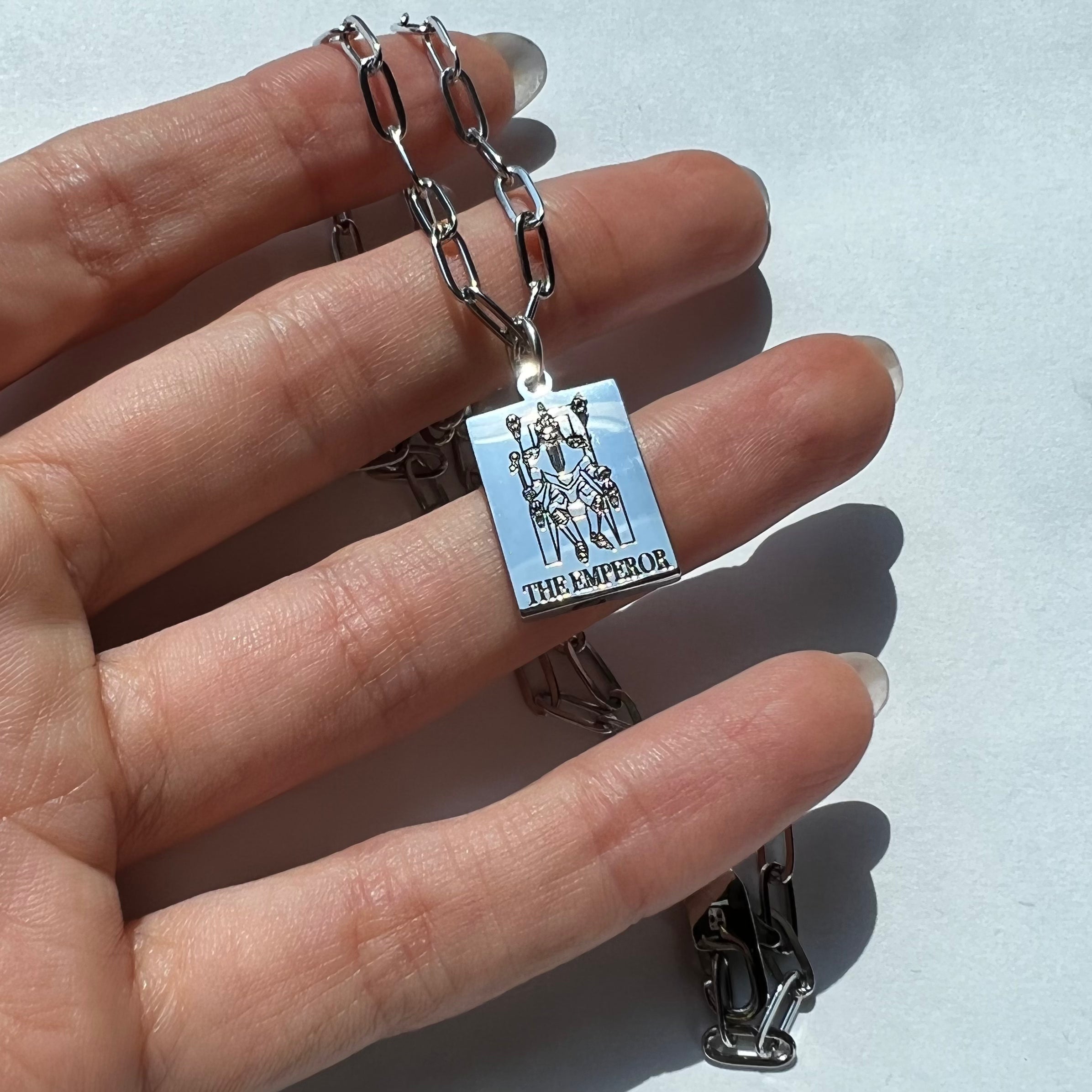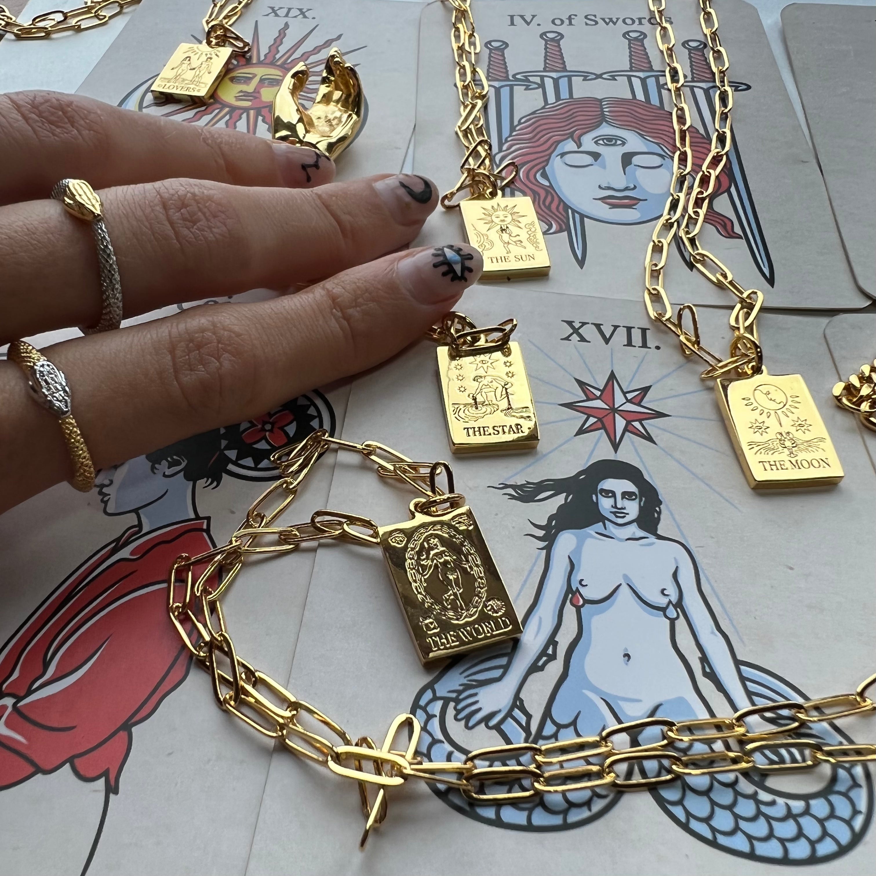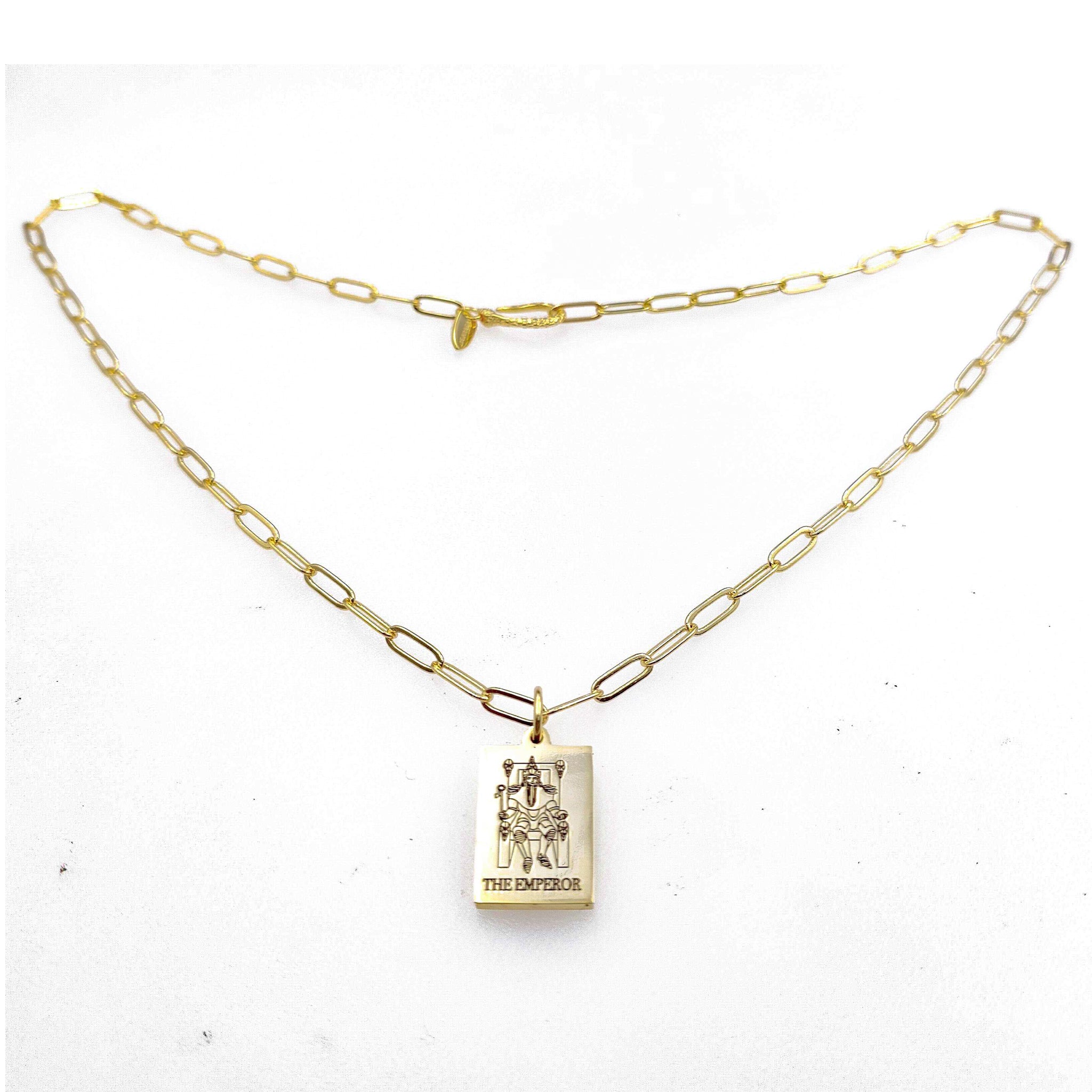 Beautiful tiny tarot cards with inspiring messages on the back to take and hold your power. Shipping today on a beautiful thick chain with a magical gold snake clasp! Adjustable in length chain that’s 18” long.