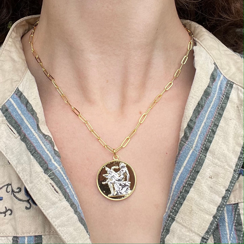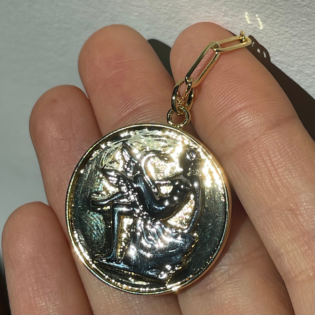 This badass coin swan necklace will help you realize we all have light and dark inside of us so make your poison into medicine into your spirits wine. Has a super detailed snake clasp that’s adjustable anywhere on the chain, so you can wear it as a choker or 18” necklace.