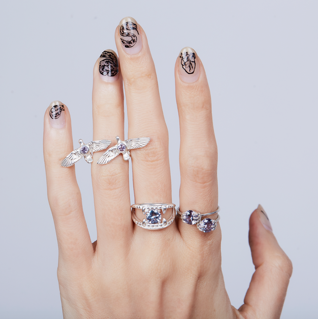 Baby monster claws gripping an Alexandrite color change stone! Let the cute grip inspire you to grab a hold of life and control your destiny. Color changes on the light you’re in!