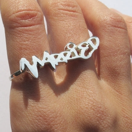 This two finger ring is for those who aren't afraid to say it's bad ass to be married! This ring celebrates personal choice, enjoy.