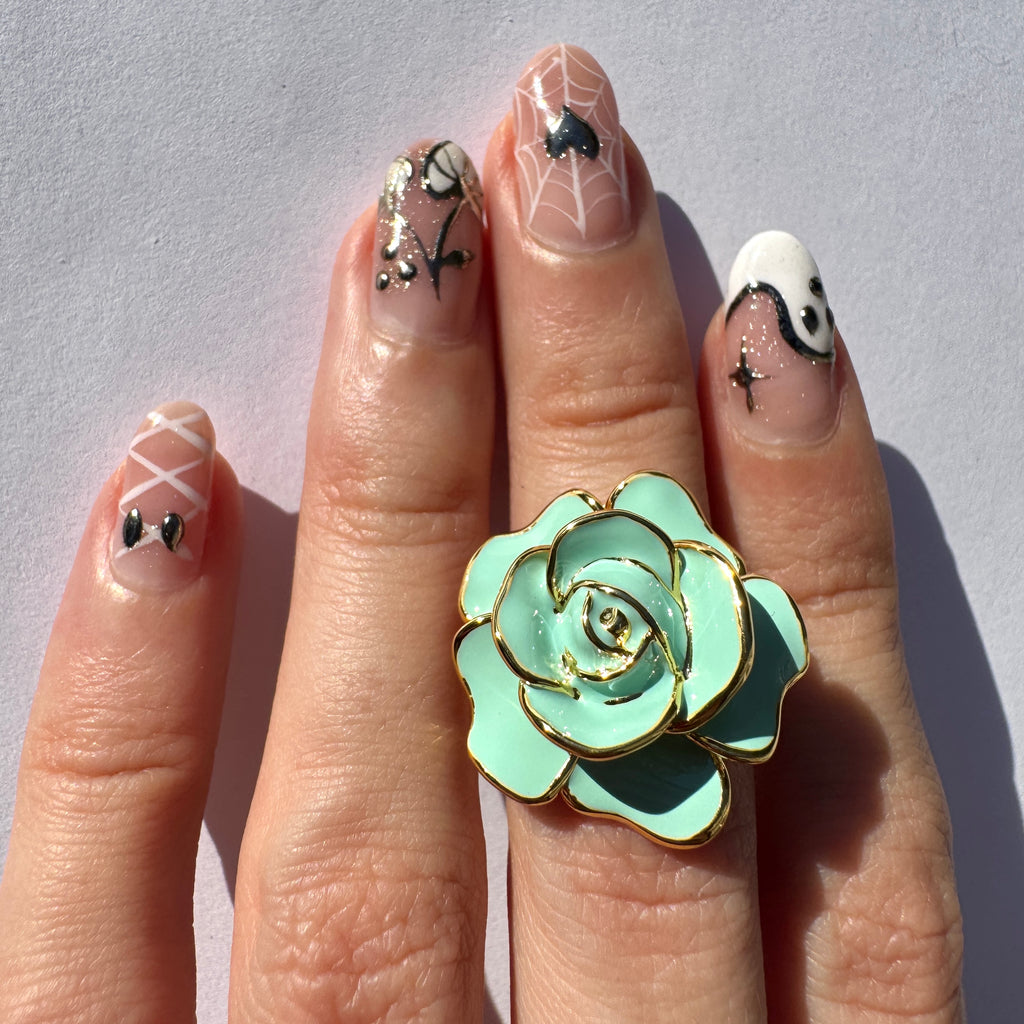 Beautiful Sagittarius birth flower ring is Peonies! In gorgeous moss green color. Makes a great gift!