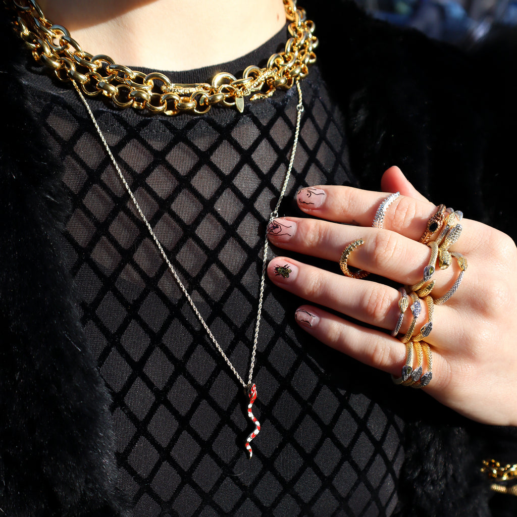 Super classy colorful rad for everyday snake necklace. Makes a great gift for your bestie or yourself! Silver on 16-18” chain
